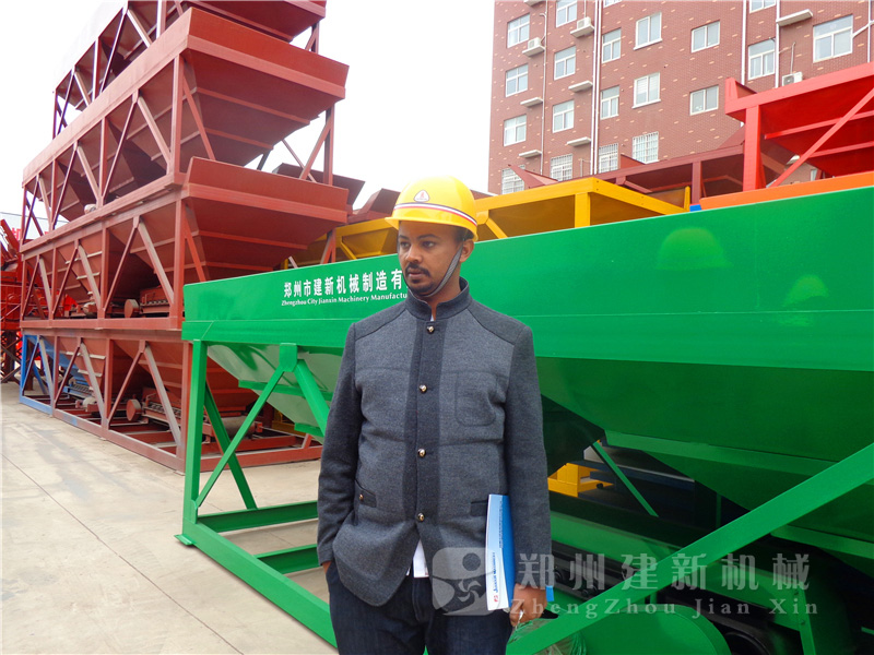 一排排整齊的配料機、攪拌機,展示著鄭州建新公司雄厚的實力,也讓來自埃塞俄比亞的客戶真真切切的感受到了建新混凝土攪拌站設備的技術、工藝,無微不至的服務,更是堅定了客戶與建新公司合作的信念。